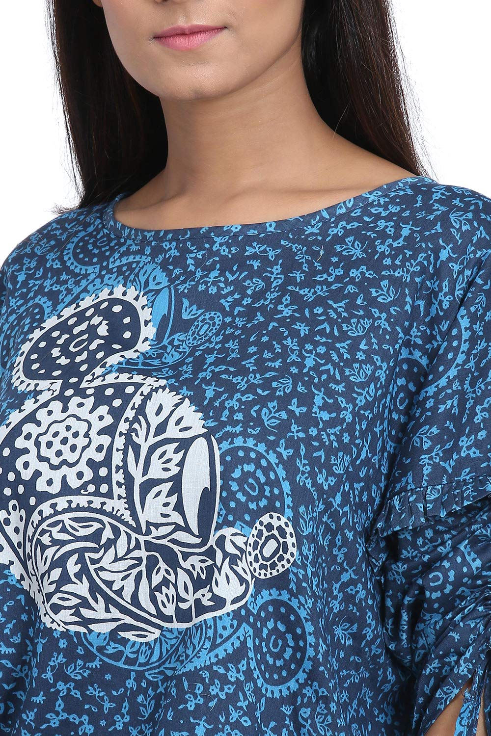 The BIBA Women Printed Mix & Match Top in model Indie MI15017 brings effortless style and comfort to your everyday wardrobe. Firstly, it’s made from 100% premium cotton, ensuring breathability and soft texture against the skin. Moreover, the playful mix-and-match print—centered around a bold “Indie Mickey” motif—adds a fun twist to your ethnic fusion looks. Additionally, the straight-cut silhouette offers a flattering fit up to size 36, while the relaxed hem ensures ease of movement. Finally, the tie-up sleeves with frill detailing enhance femininity, making this top versatile for casual and semi-formal occasions alike
