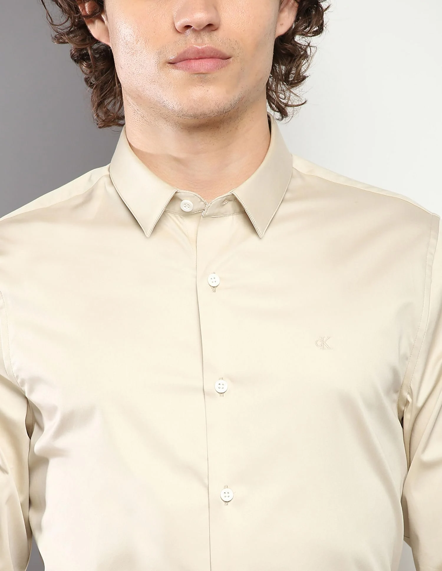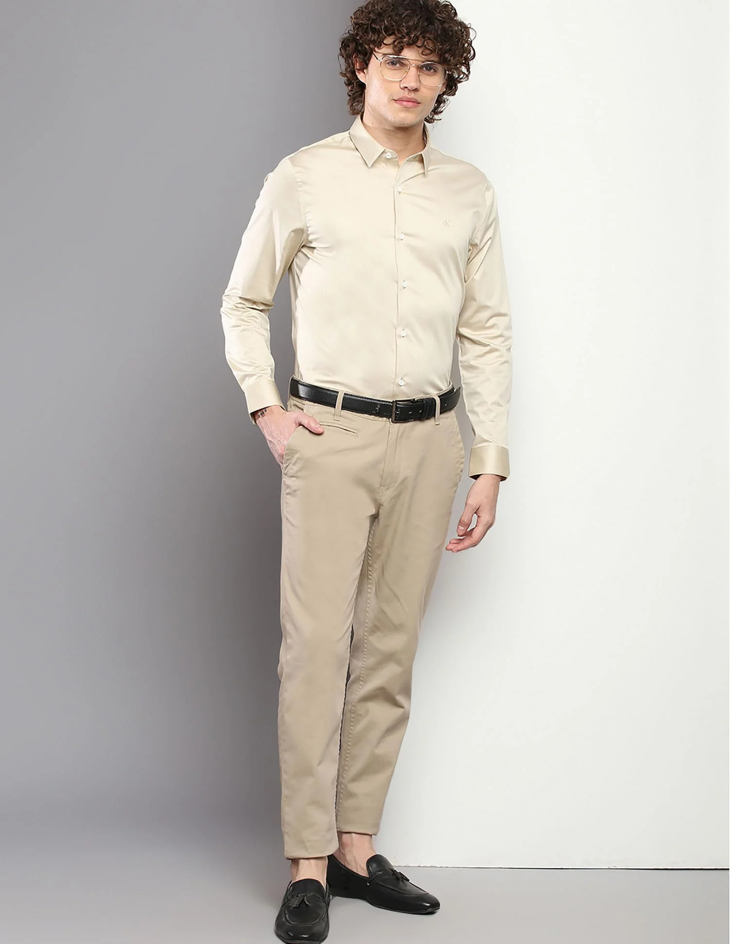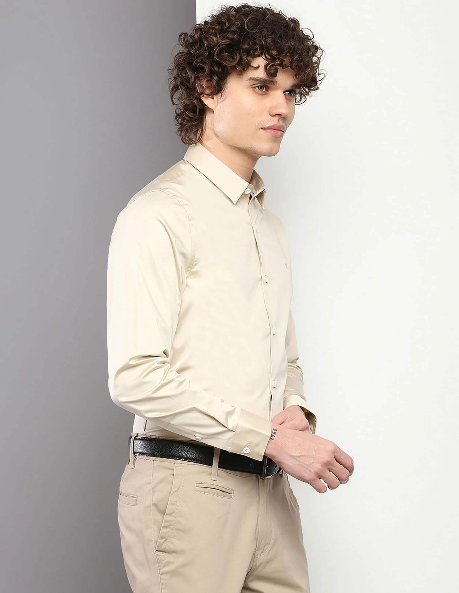 The Calvin Klein Jeans Solid Slim Fit Shirt in classic beige offers a modern take on timeless style. Perfect for men who appreciate clean design, comfort, and versatility.