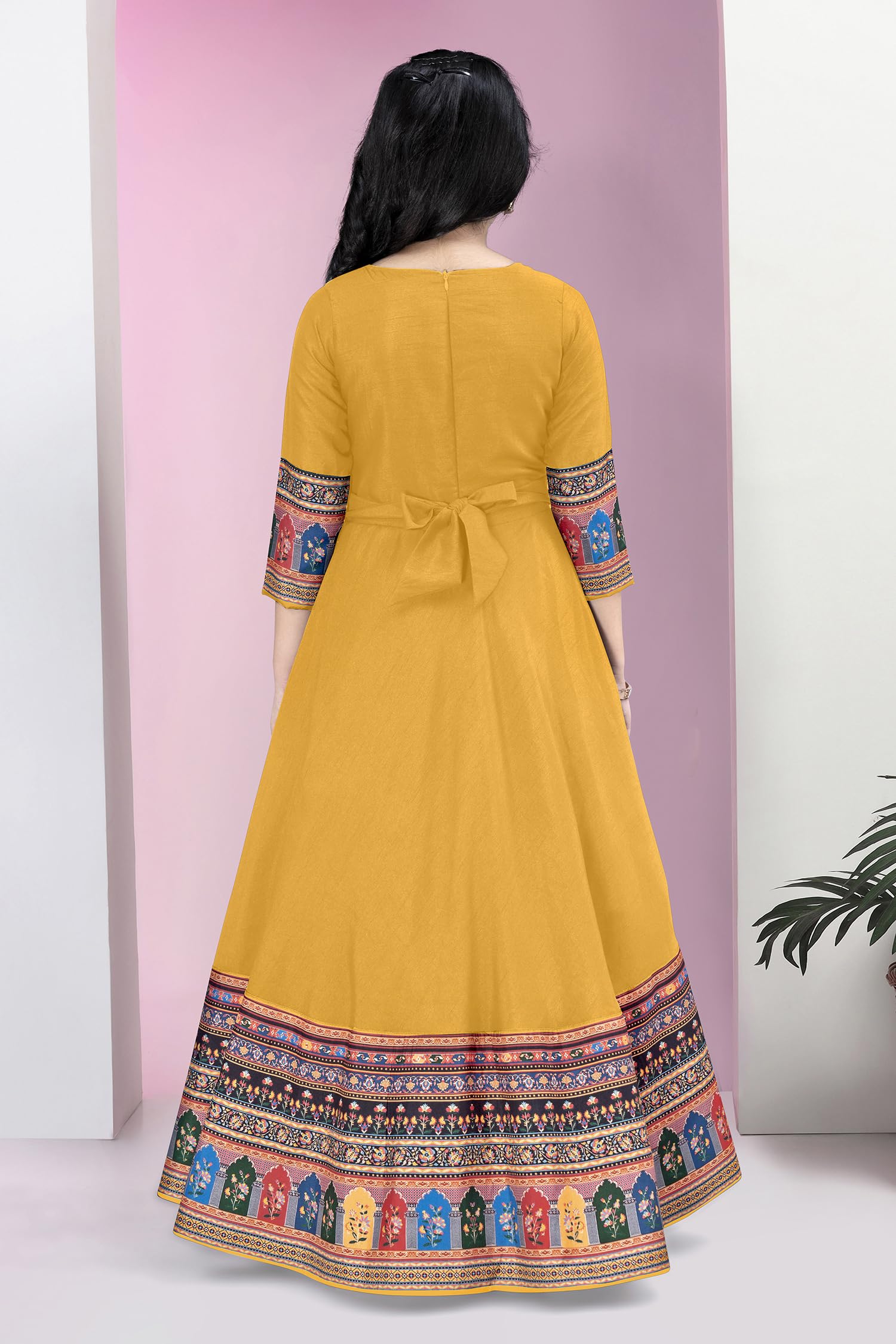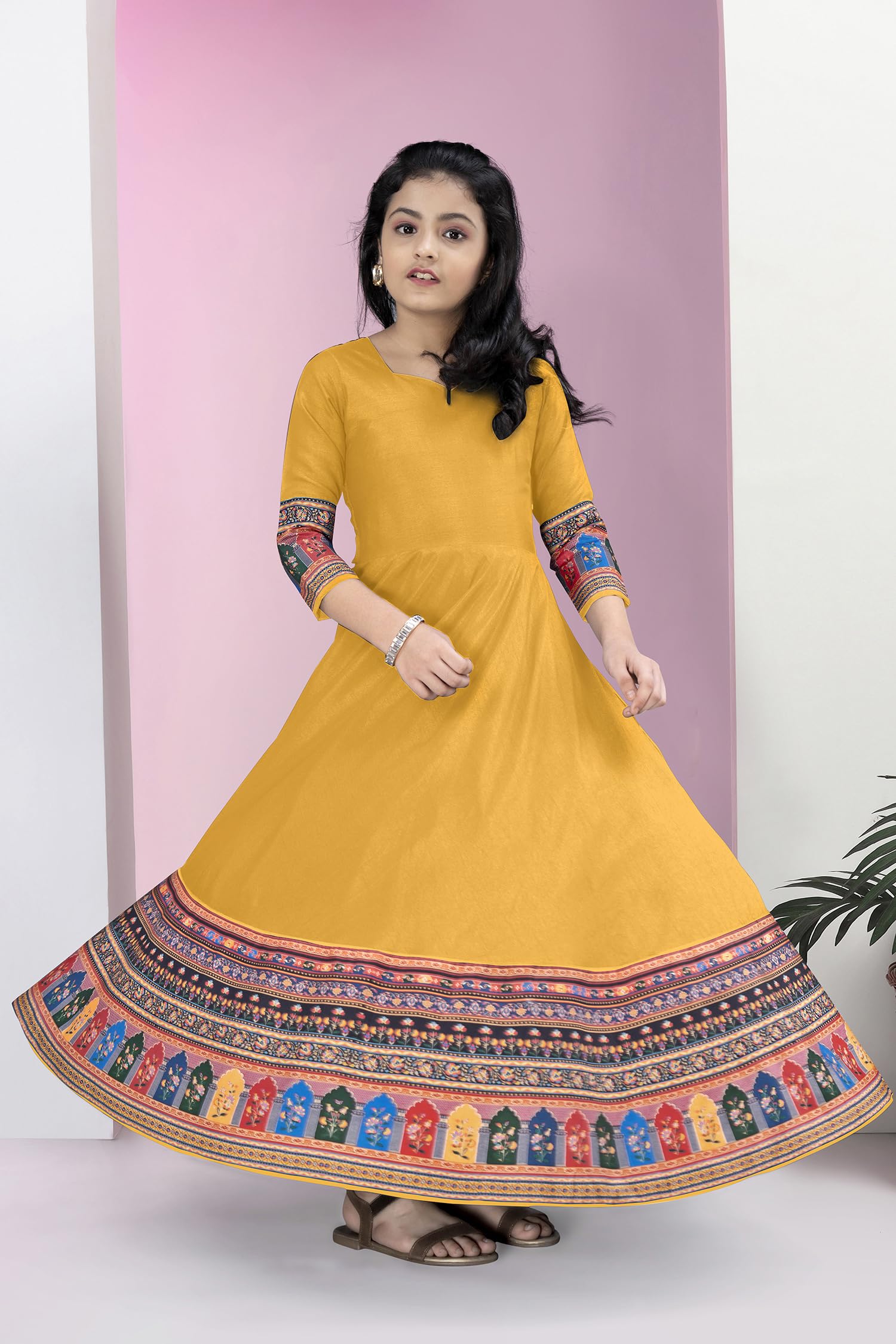 Add a splash of vibrant elegance to your child’s wardrobe with the Fashion Dream Girls’ Crepe Silk Digital Printed Maxi Dress in a lively mustard yellow. Tailored for girls aged 11–12 years, this floor‑grazing maxi dress combines modern digital prints with luxurious crepe silk, offering an ideal blend of comfort, style, and sophistication for special events.