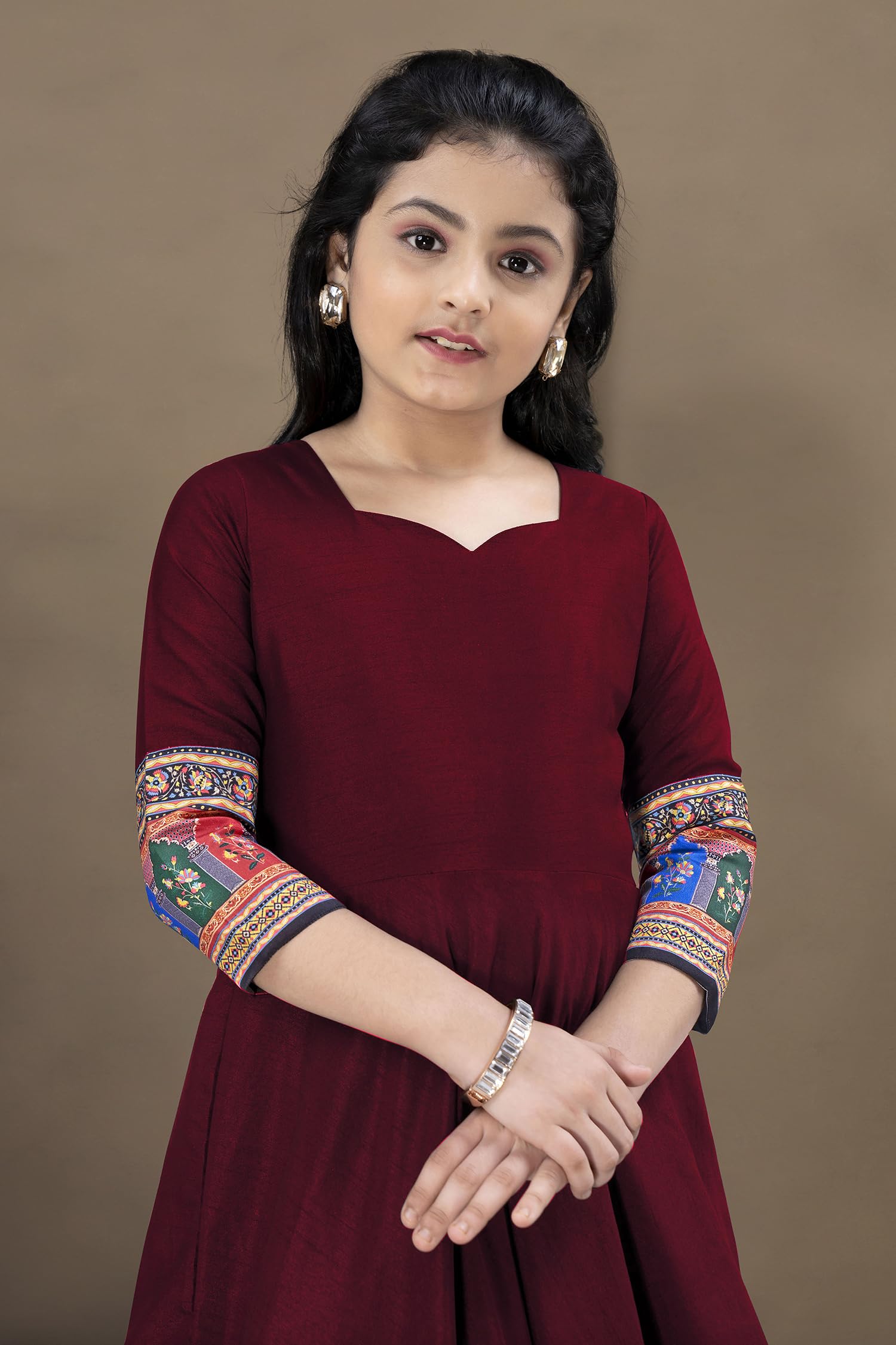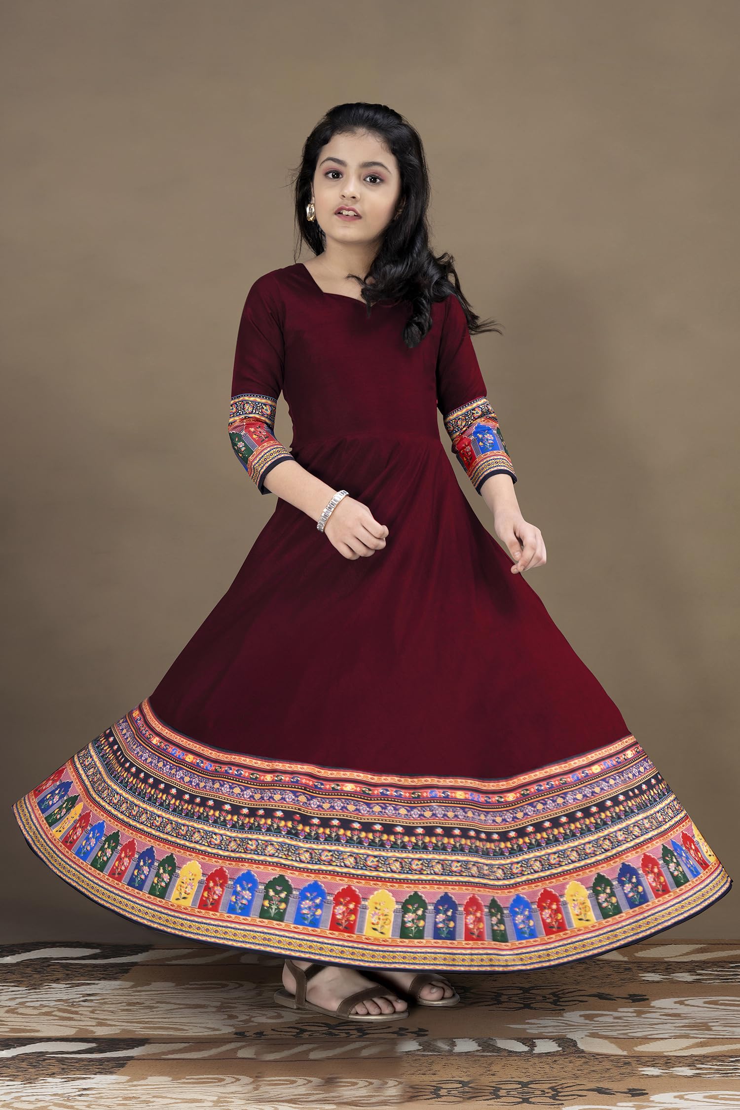 Add timeless elegance to your child’s wardrobe with the Fashion Dream Girls’ Crepe Silk Digital Printed Maxi Dress. Designed for girls aged 5–6 years, this stunning maroon maxi dress offers a perfect combination of premium comfort and vibrant digital prints, making it an ideal choice for birthday parties, weddings, school events, and festive celebrations.