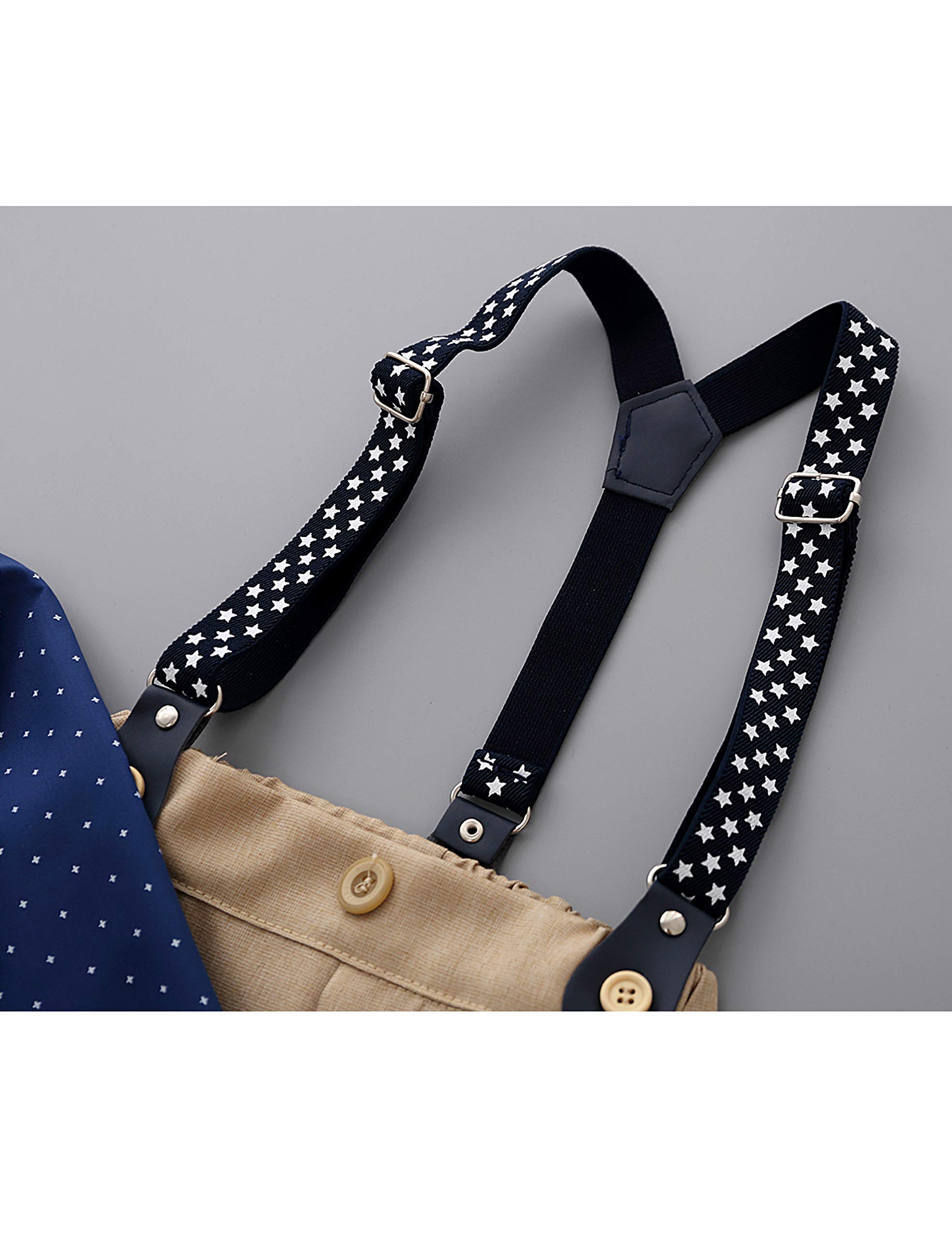 Complete 3‑piece set: Includes a short-sleeved dress shirt, matching suspender pants, and a detachable bowtie.