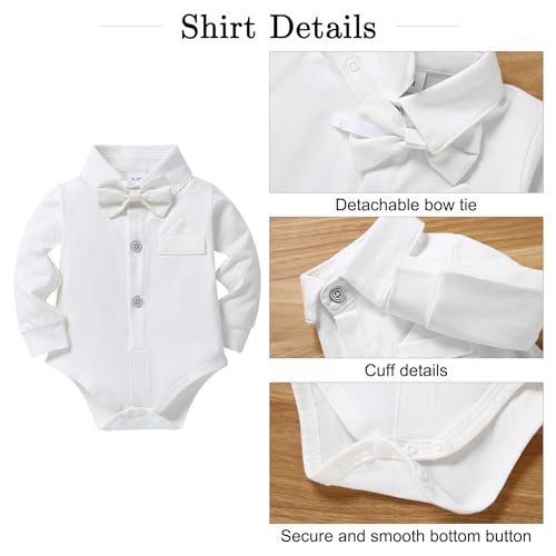 4‑piece coordinated set: Includes a crisp white shirt, stylish vest, matching pants, and an elegant bowtie.